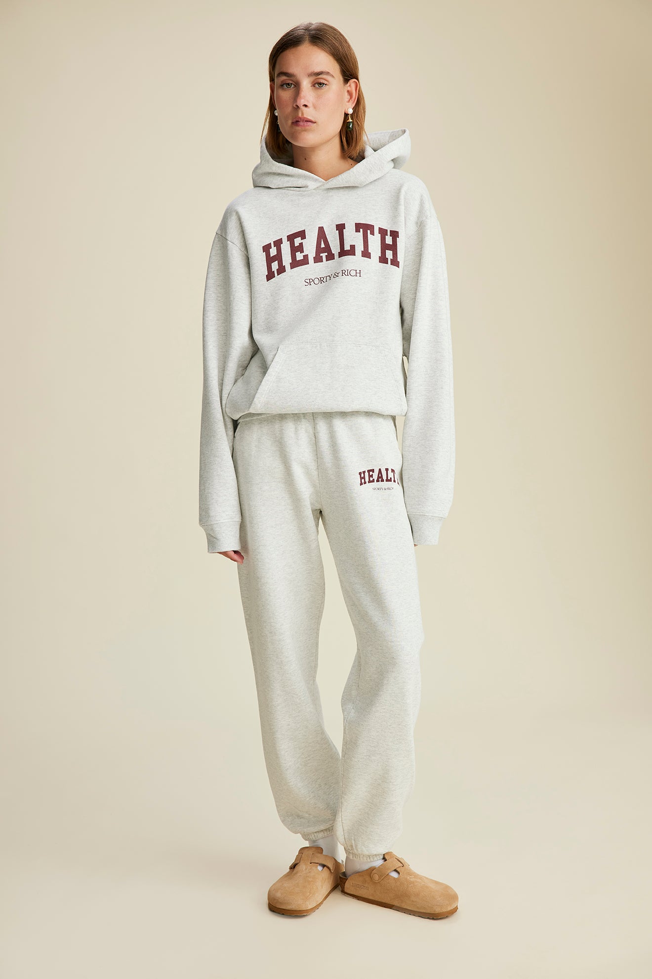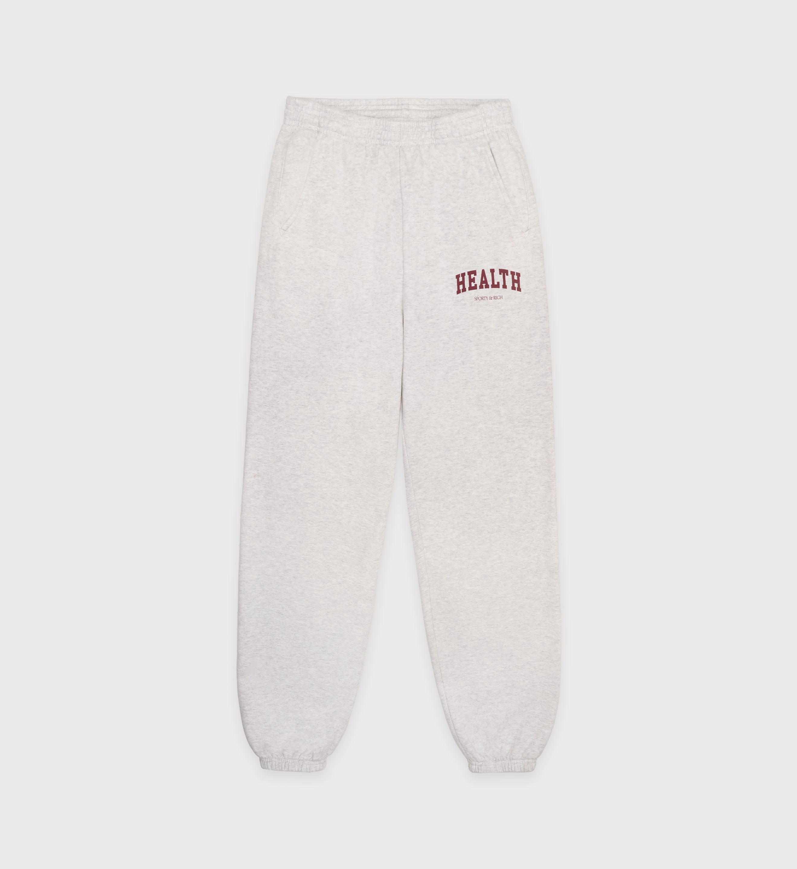 Our Health Ivy Sweatpant in Heather Gray. Constructed of USA grown cotton, our sweatpants are pre-shrunk and fit slightly oversized. Our sweatpants are made in Los Angeles where our factory pays its employees above minimum wage + overtime and benefits. Model wears a size S.