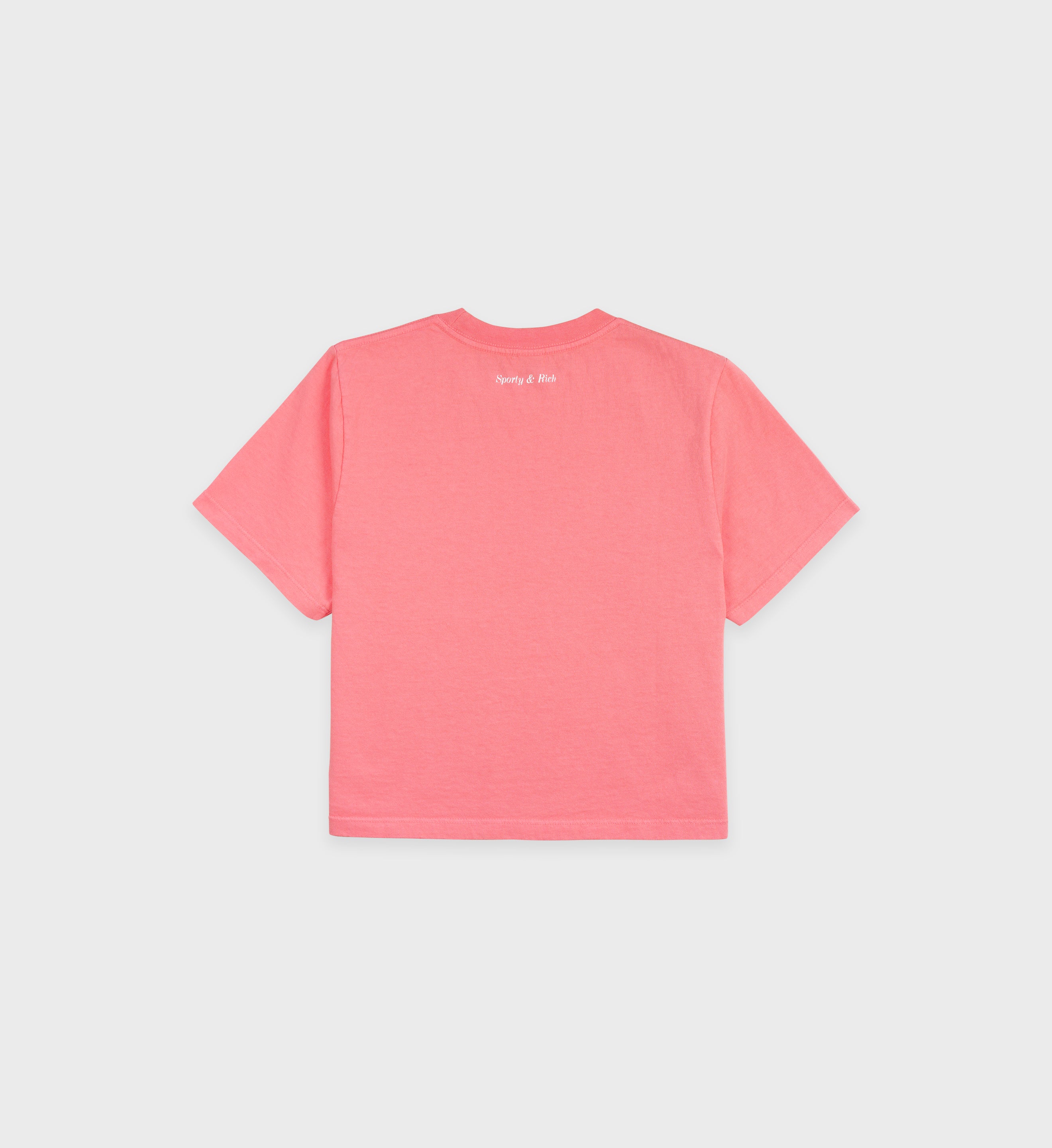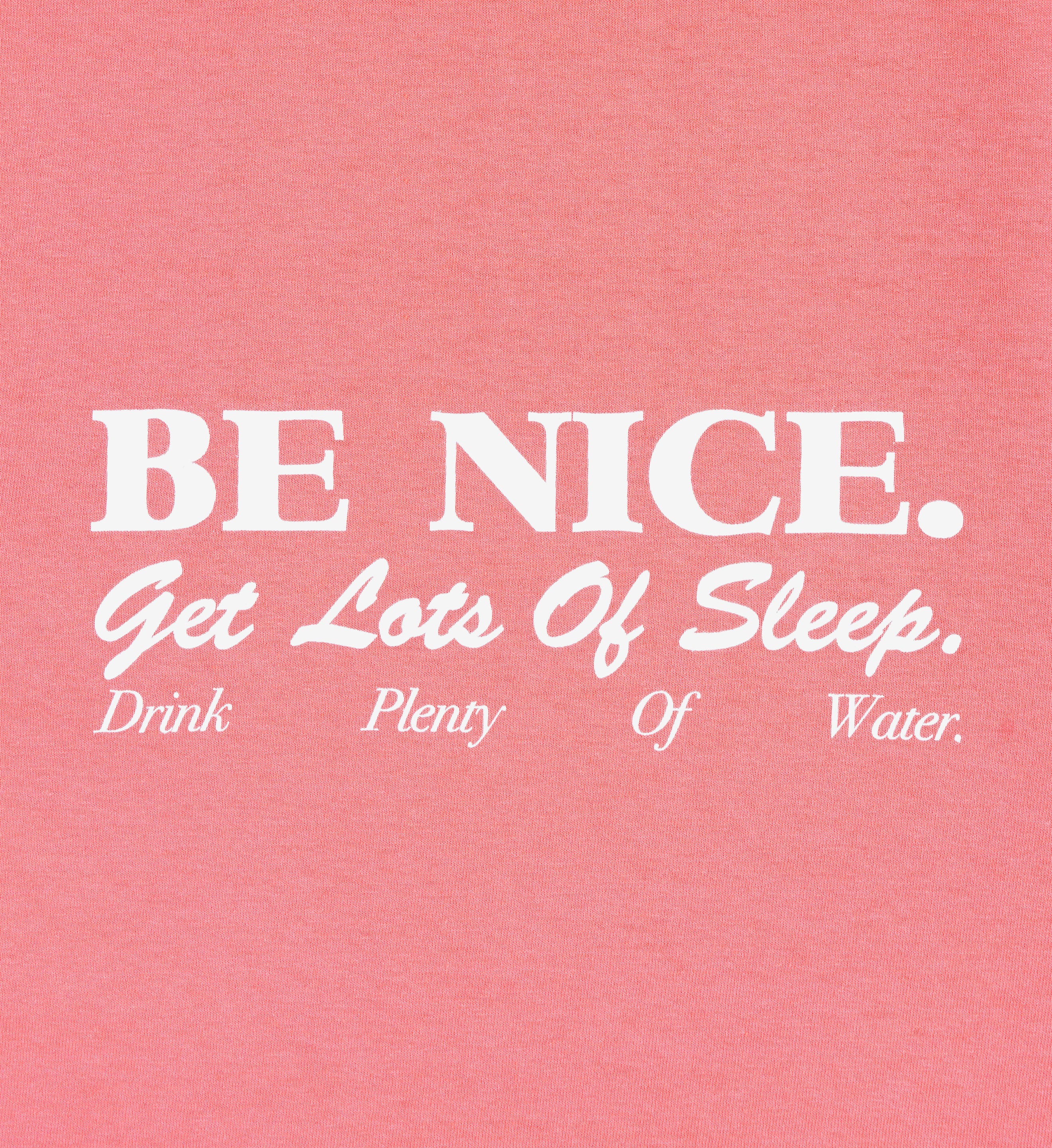Our Be Nice Cropped T-Shirt in Strawberry. Constructed of 100% USA grown cotton, our tees are pre-shrunk and fit slightly oversized with a cropped bottom. Our T Shirts are made in Los Angeles where our factory pays its employees above minimum wage + overtime and benefits. Zoë is 5'9' and wears a size S.