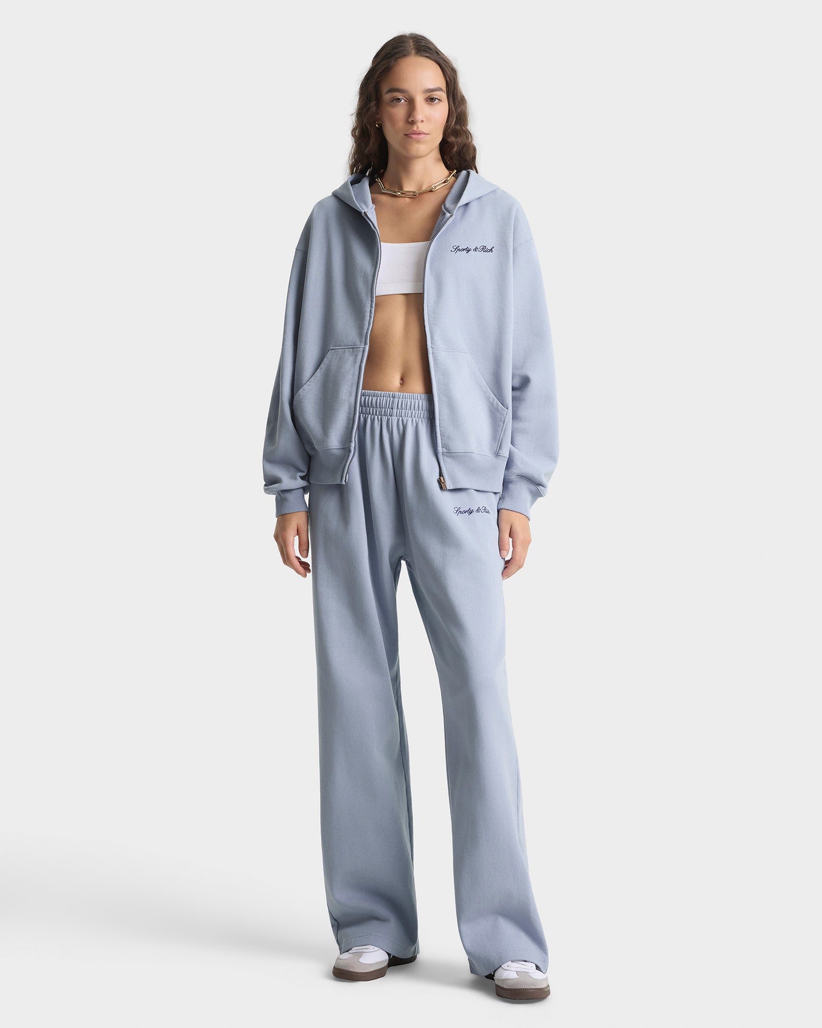 Signature Logo Embroidered Wide Sweatpant - Faded Blue/Navy