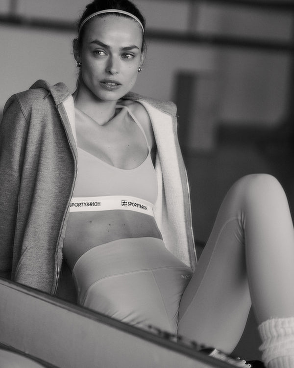 Our 80s Runner Sports Bralette in Paradise. Made from a high quality and comfortable fabric, our Sports Bralette features a built-in bra and is ideal for all kinds of sports and practice. Birgit is 5'11'/180cm and wears a size S.