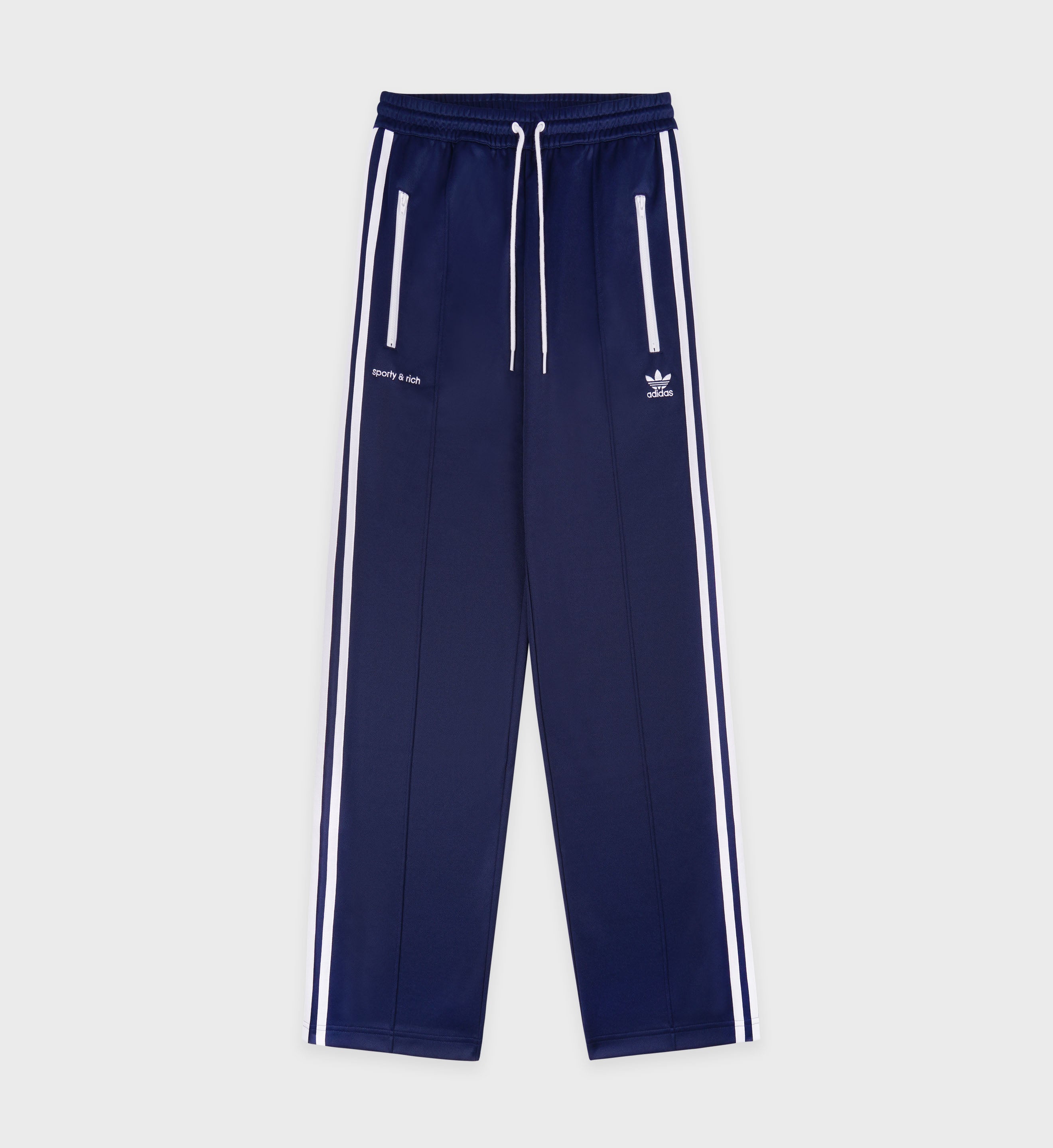 These Sporty & Rich x Adidas Track Pants are made from a high quality and comfortable cotton blend. Our collaborative track pants have a straight cut featuring the adidas's iconic three-stripes design on the side, a pleat detail down the leg and embroidered logos. Model wears a size S.