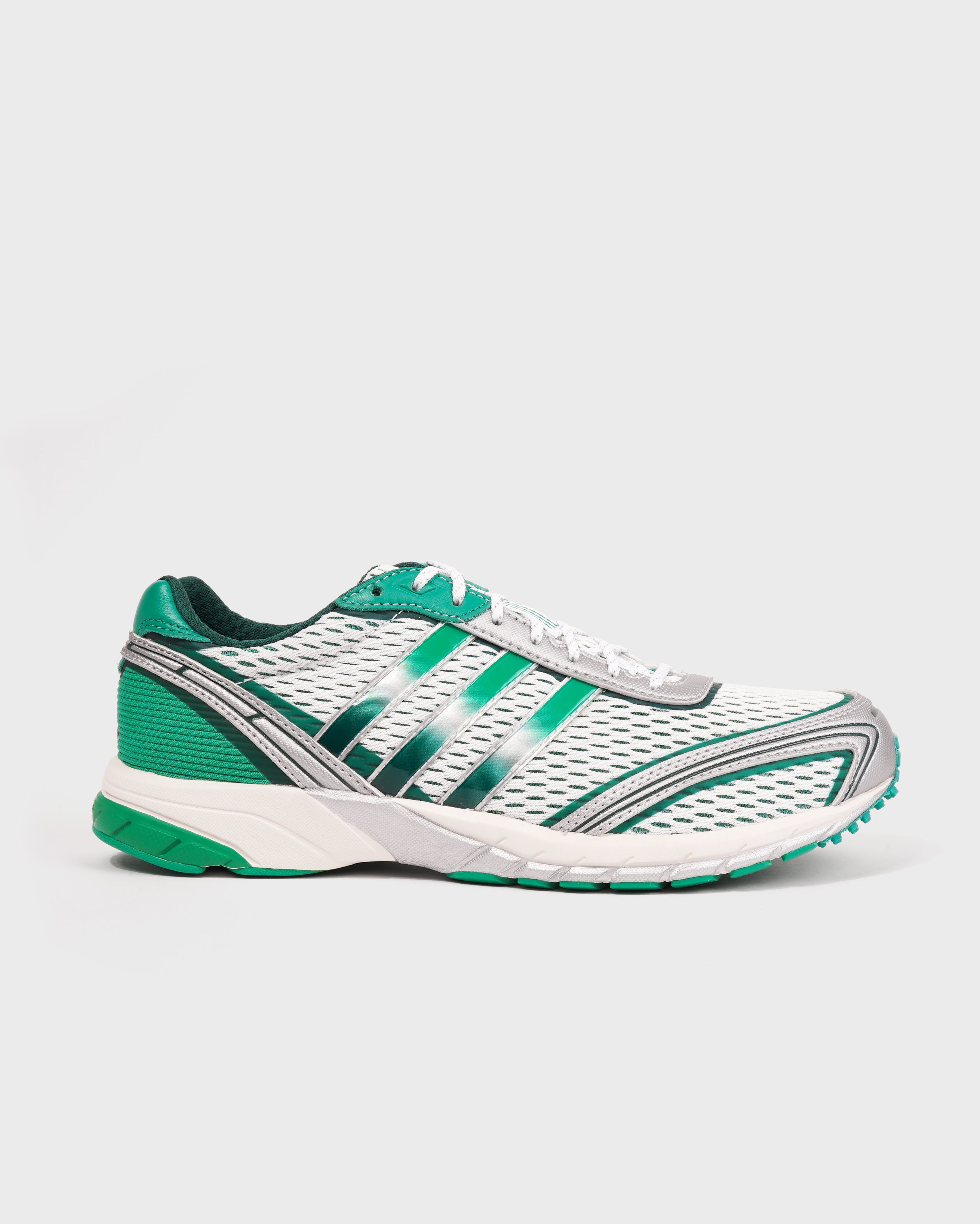 Our interpretation of the Adizero Adios takes cues from the iconic 2000s model that beat the marathon world record at the time. We've updated it with an open mesh upper and metallic accents with hints of color for a sporty look.