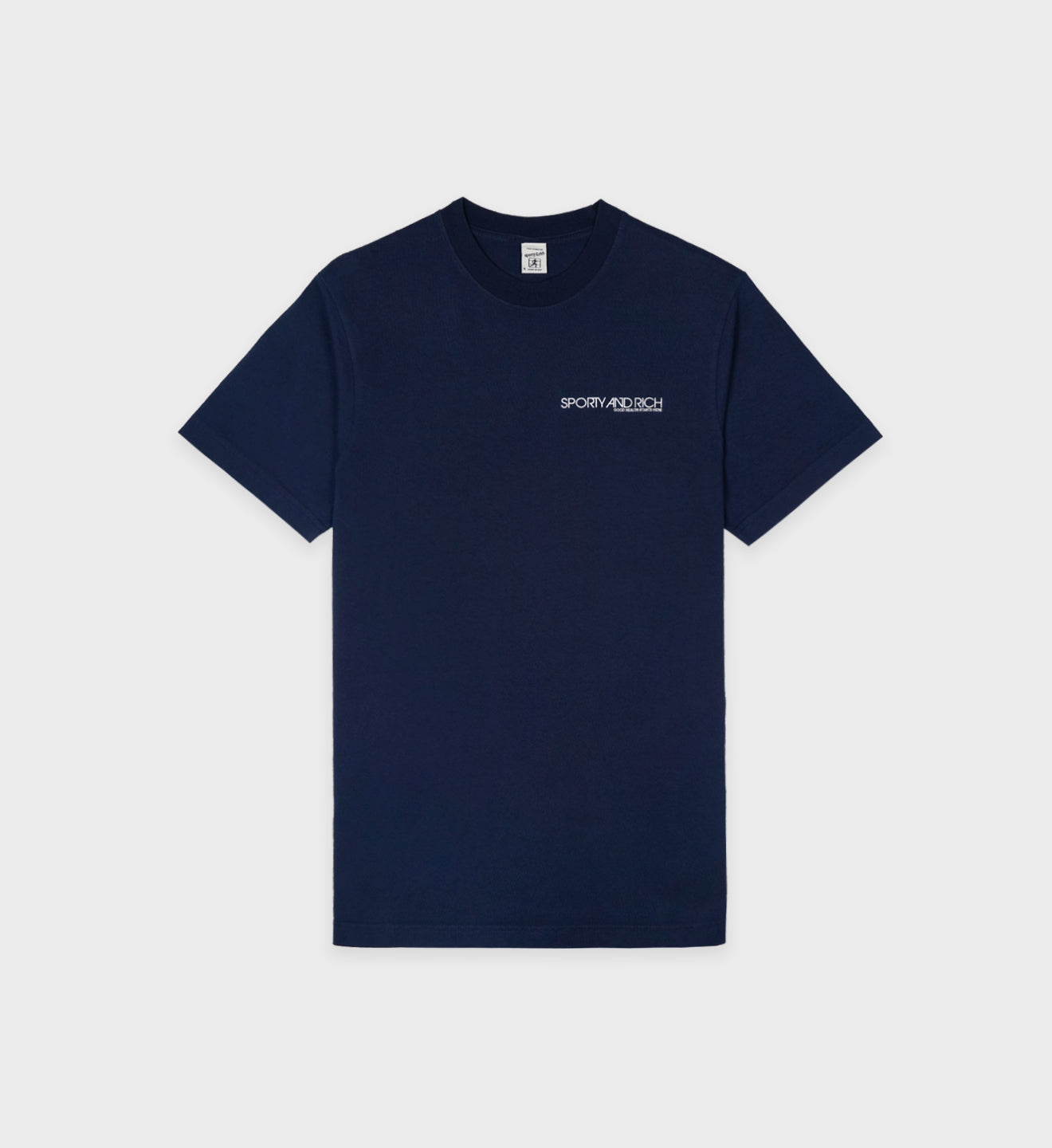 Our Disco T-Shirt in Navy. Constructed of 100% USA grown cotton, our tees are pre-shrunk and fit slightly oversized. Our T-shirts are made in Los Angeles where our factory pays its employees above minimum wage + overtime and benefits.