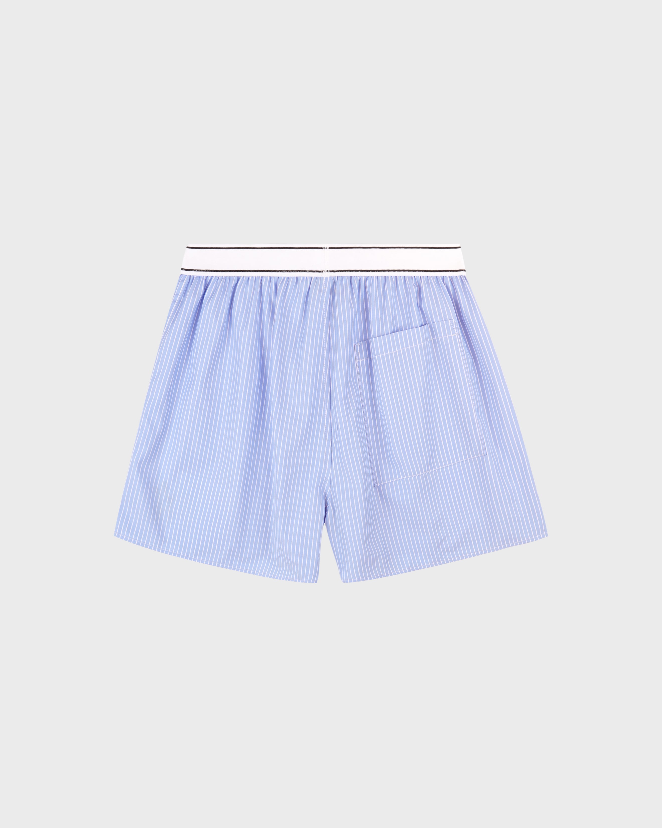Relaxed fit 100% Cotton Buttoned fly Branded elastic waistband One back pocket