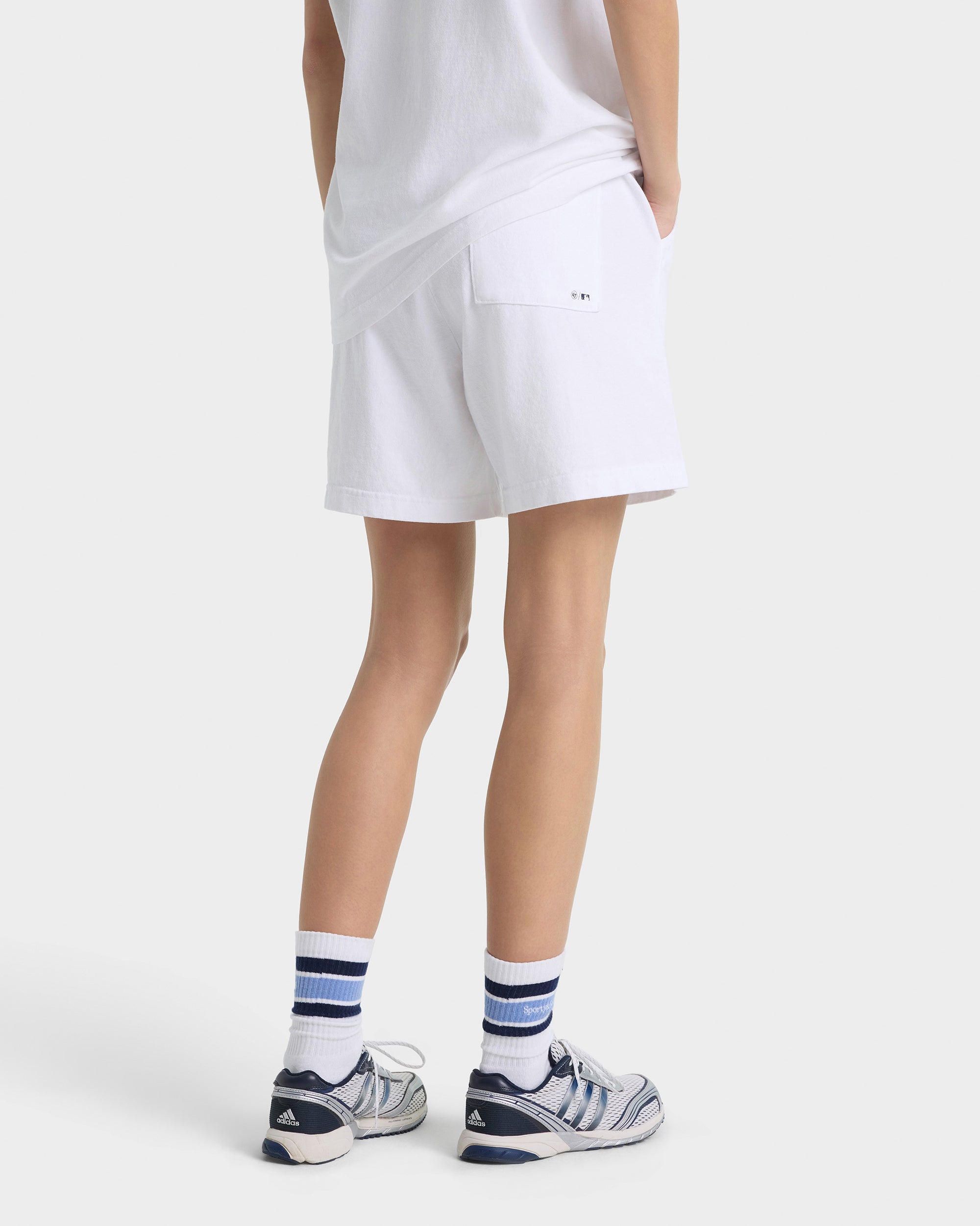 White shorts with a logo on a white background