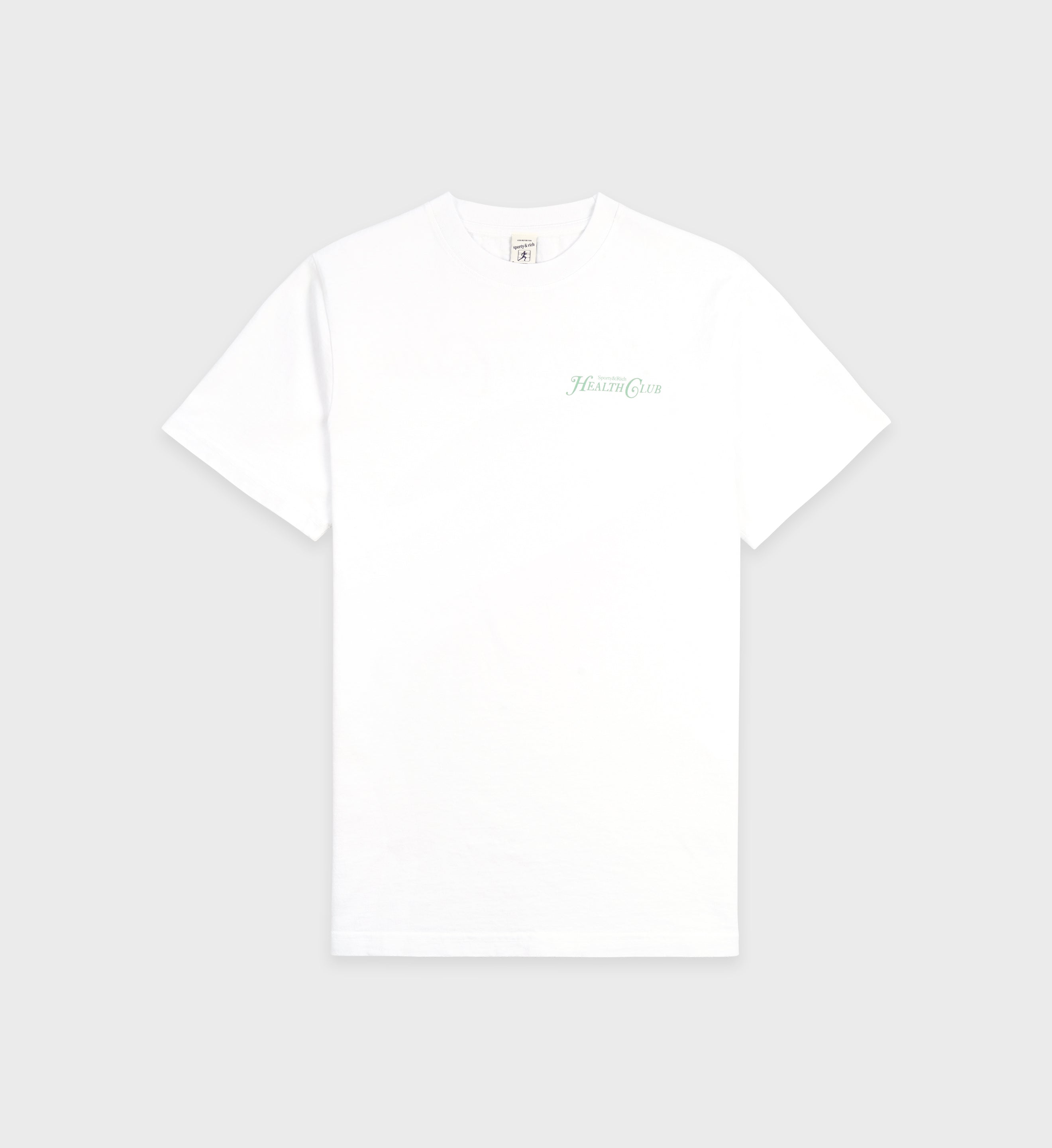 Our Rizzoli T-Shirt in White/Sage. Constructed of 100% USA grown cotton, our tees are pre-shrunk and fit slightly oversized. Our T Shirts are made in Los Angeles where our factory pays its employees above minimum wage + overtime and benefits.