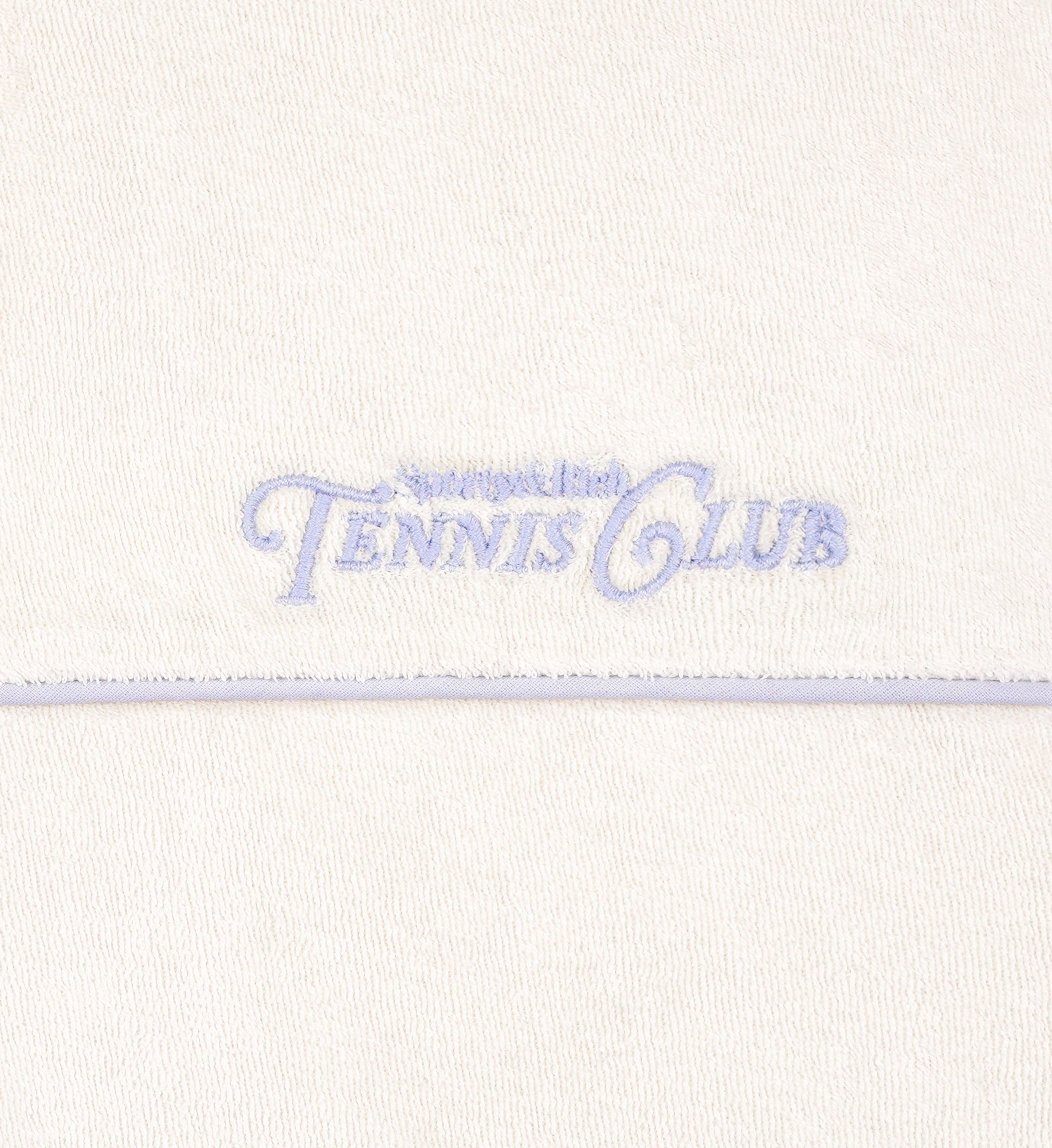 Our Rizzoli Tennis Terry Track Jacket in Milk/Washed Hydrangea. Made from a high quality, 100% cotton terry cloth, our track jackets feature a contrasting piping, an embroidered logo and a zipped closure. Ribbed cuffs and bottom.